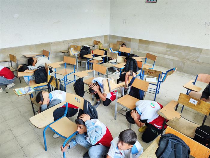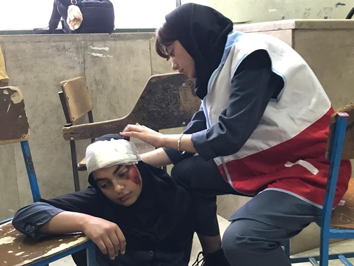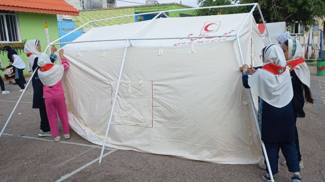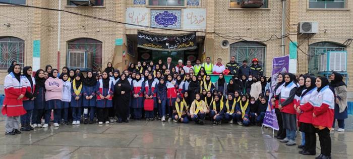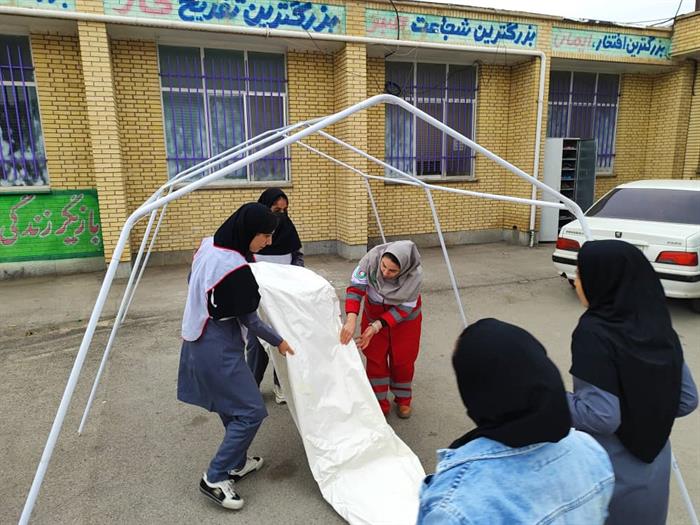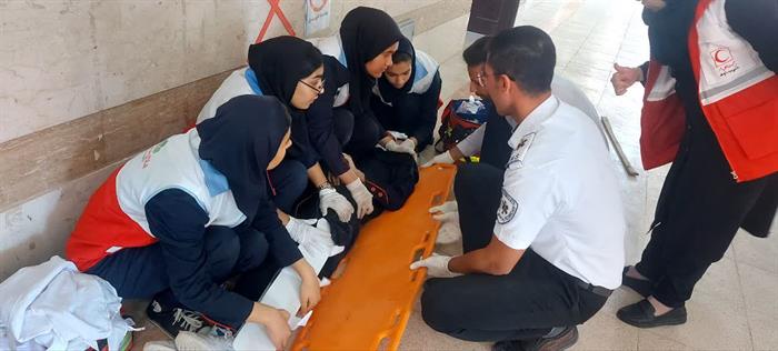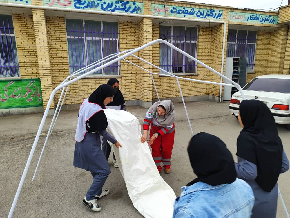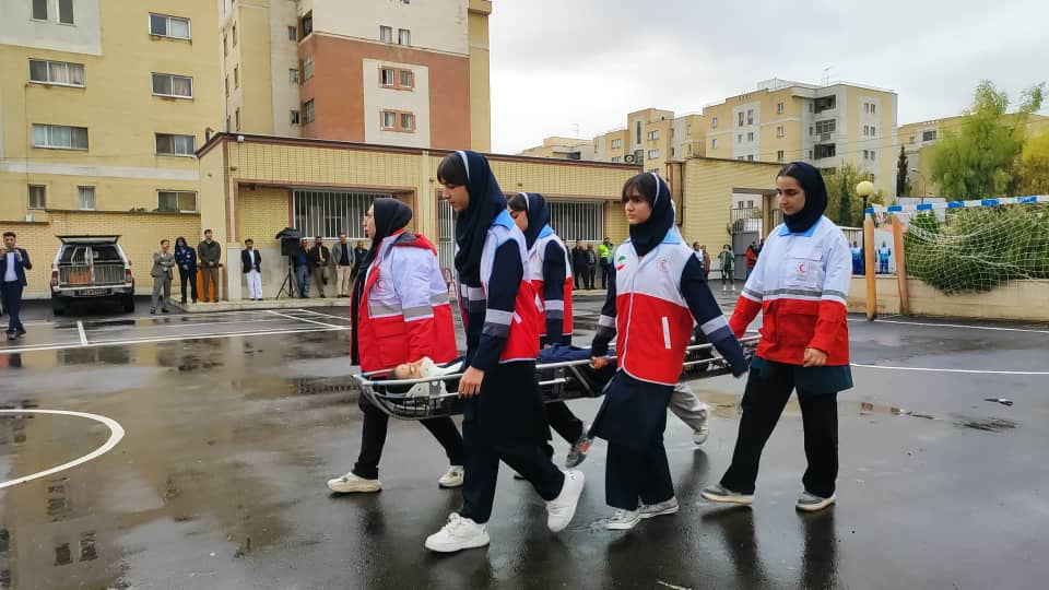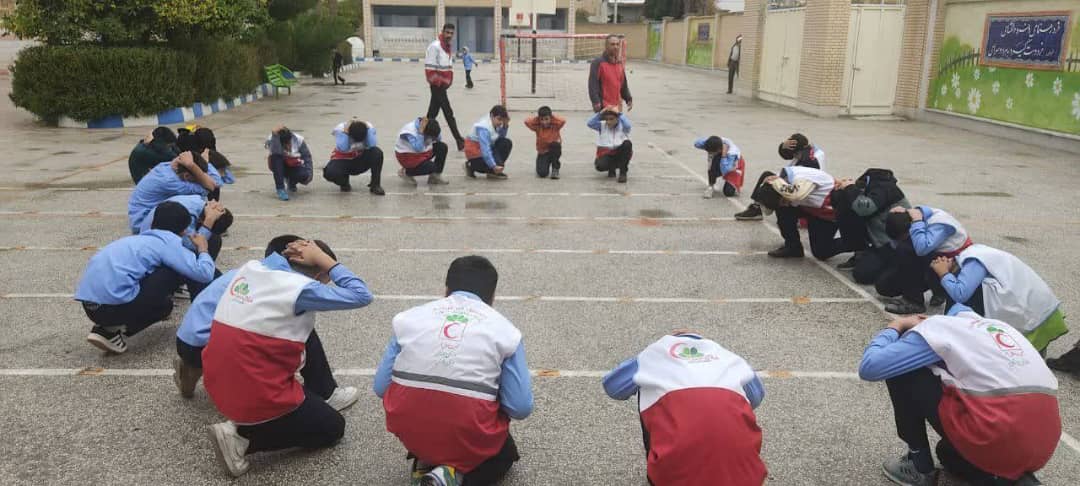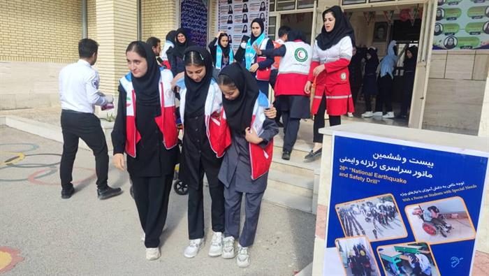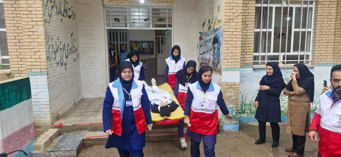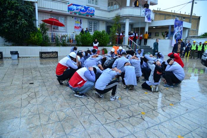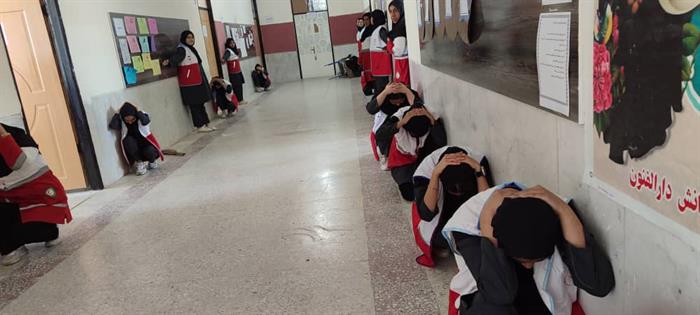 آموزش نحوه پناهگیری و خروج ایمن توسط هلالاحمر در بیست و ششمین مانور سراسری زلزله و ایمنی در سراسر استان فارس
