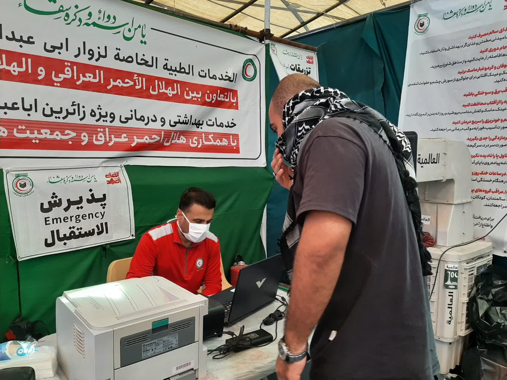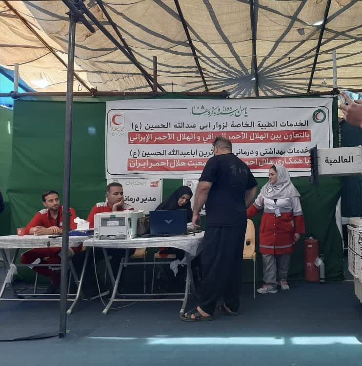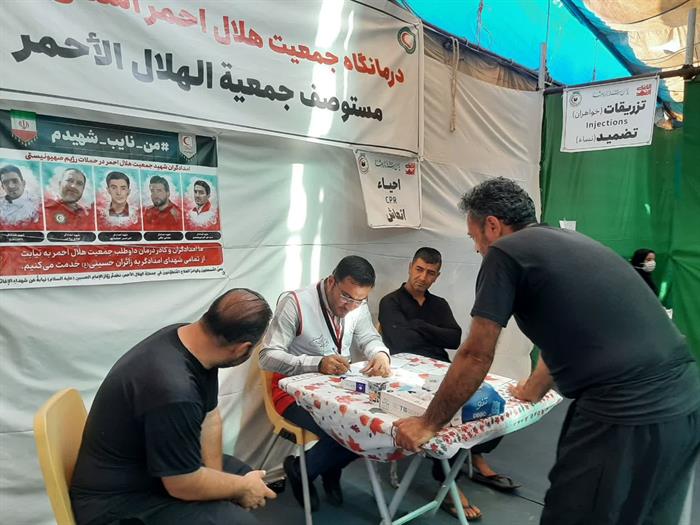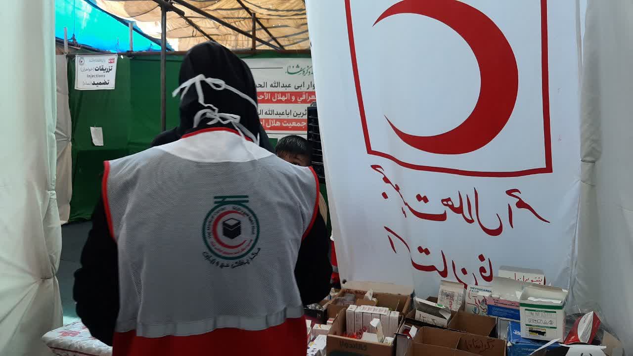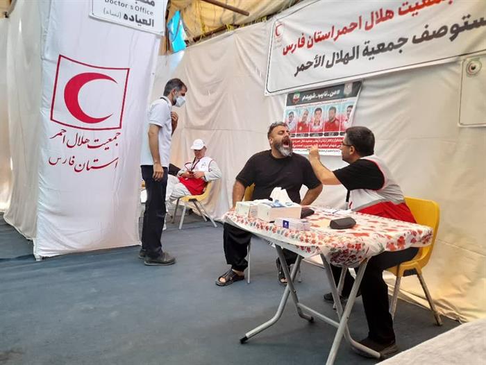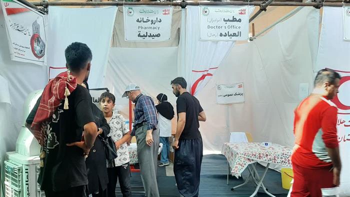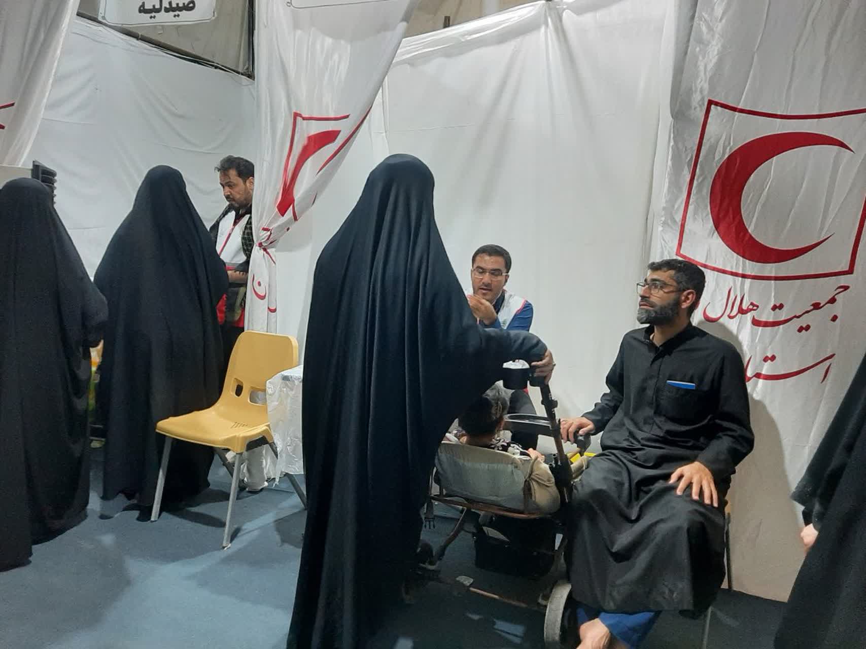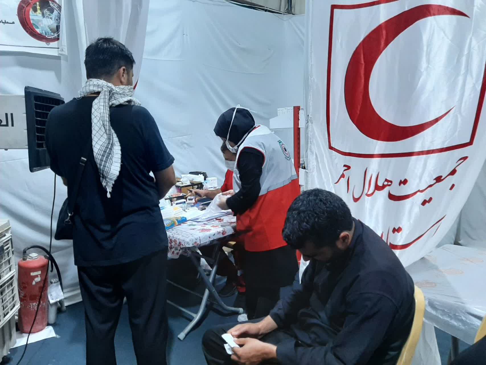 خدمترسانی تیم درمانی جمعیت هلالاحمر استان فارس به زوار حضرت اباعبدالله الحسین در درمانگاه شهر کربلا