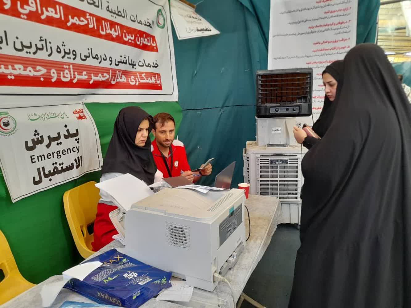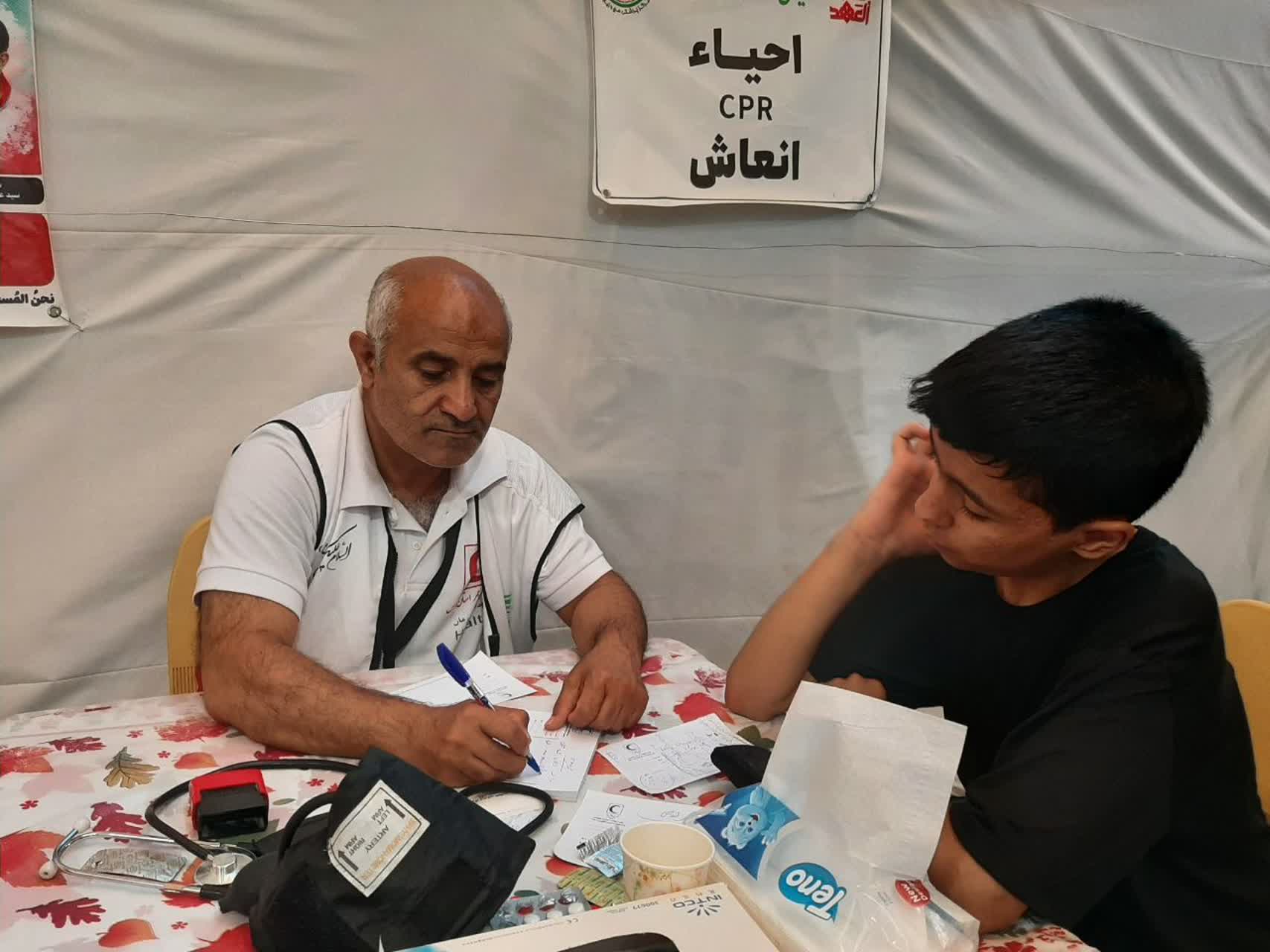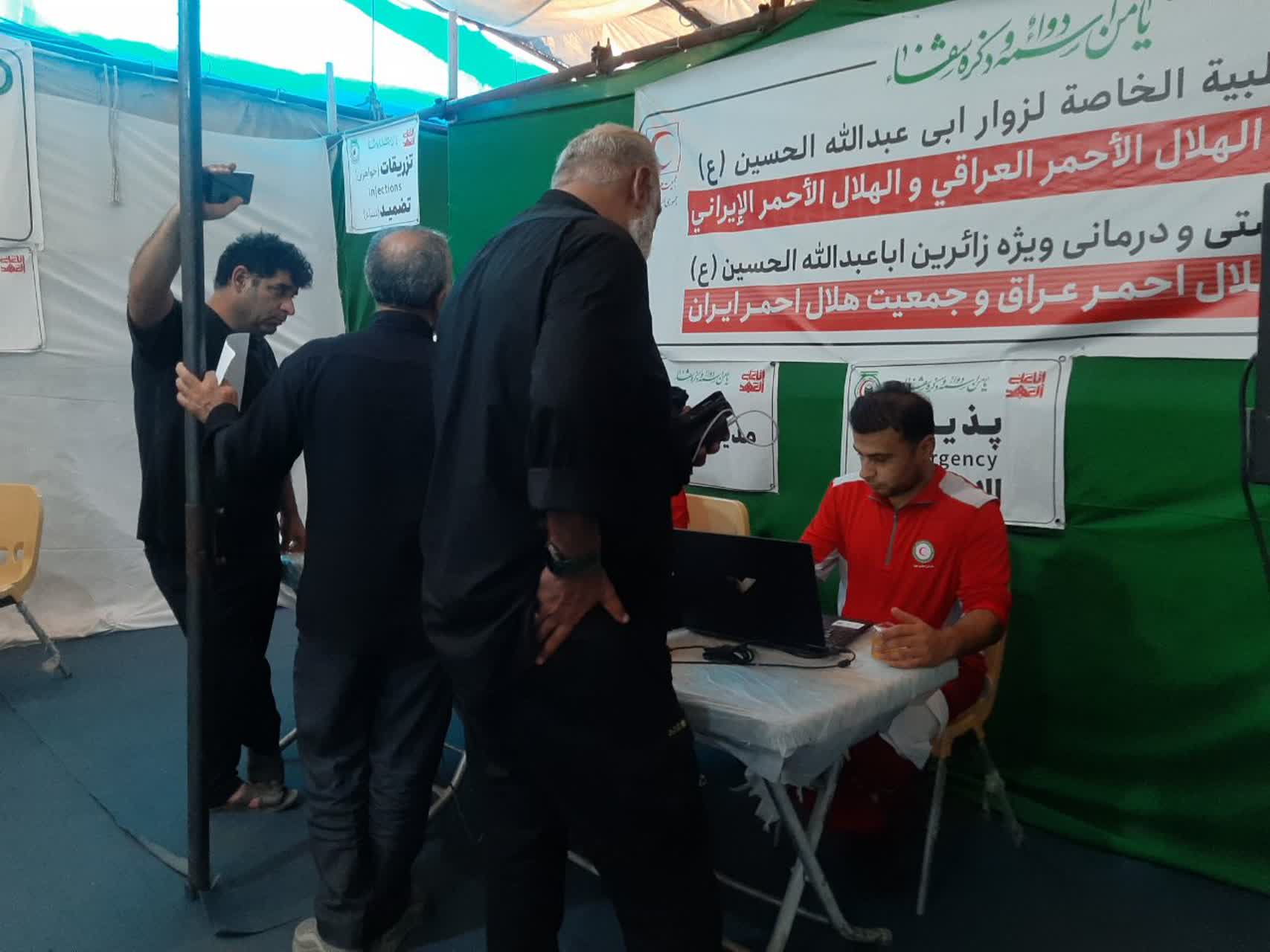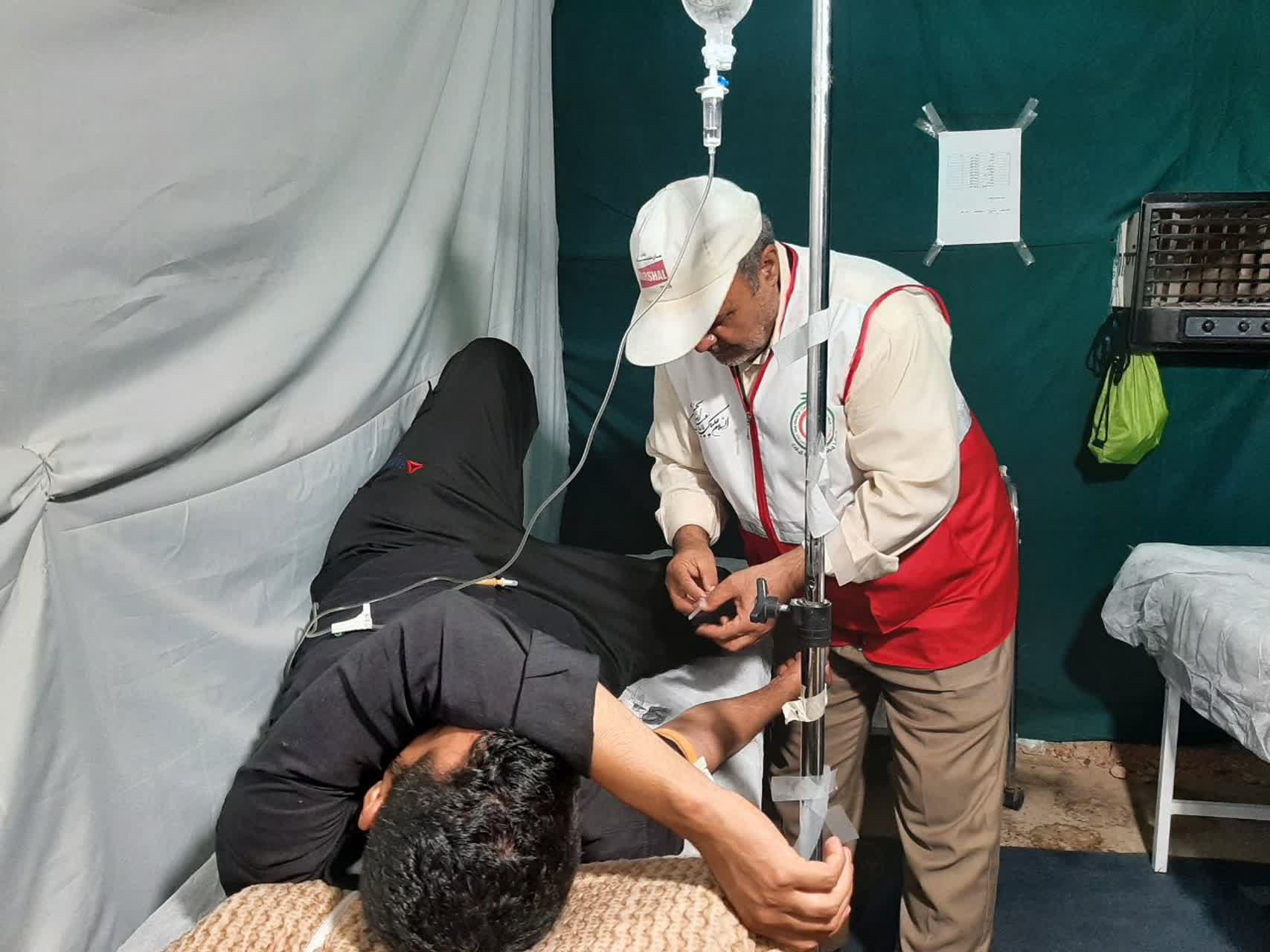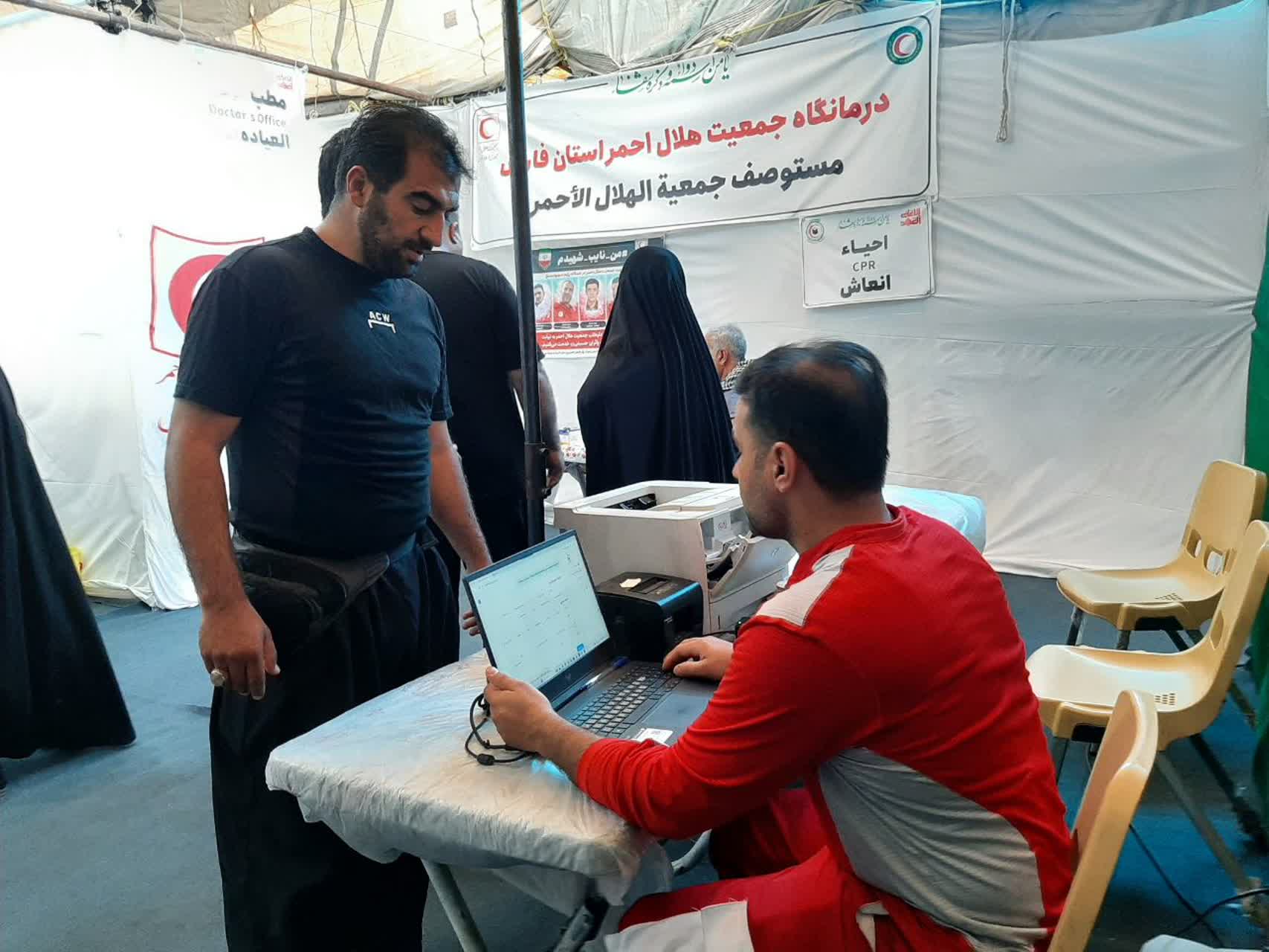 خدمترسانی تیم درمانی جمعیت هلالاحمر استان فارس به زوار حضرت اباعبدالله الحسین در درمانگاه شهر کربلا