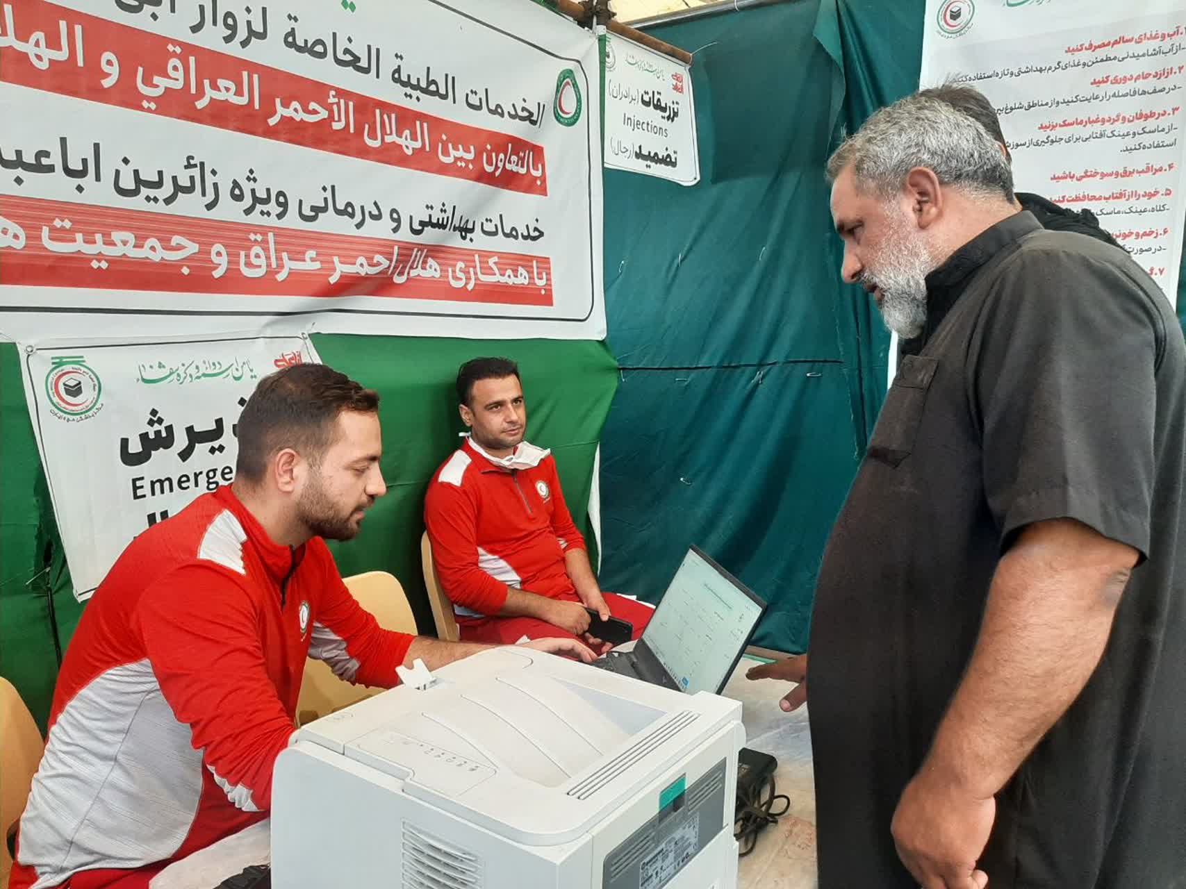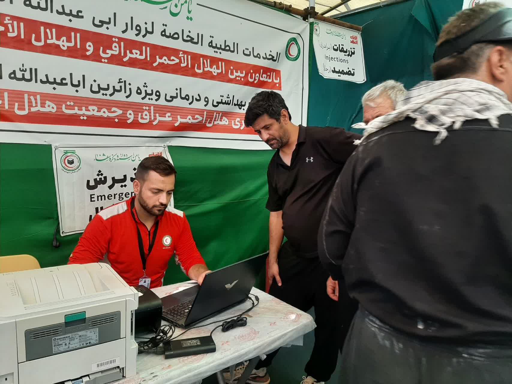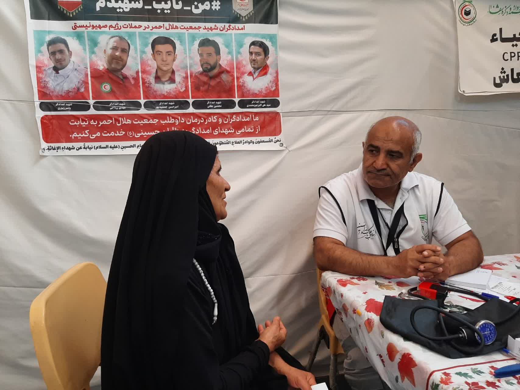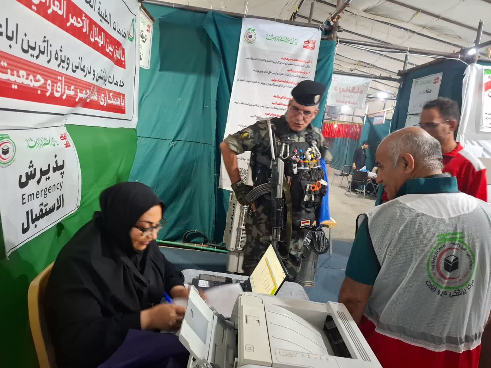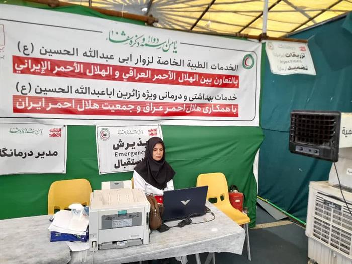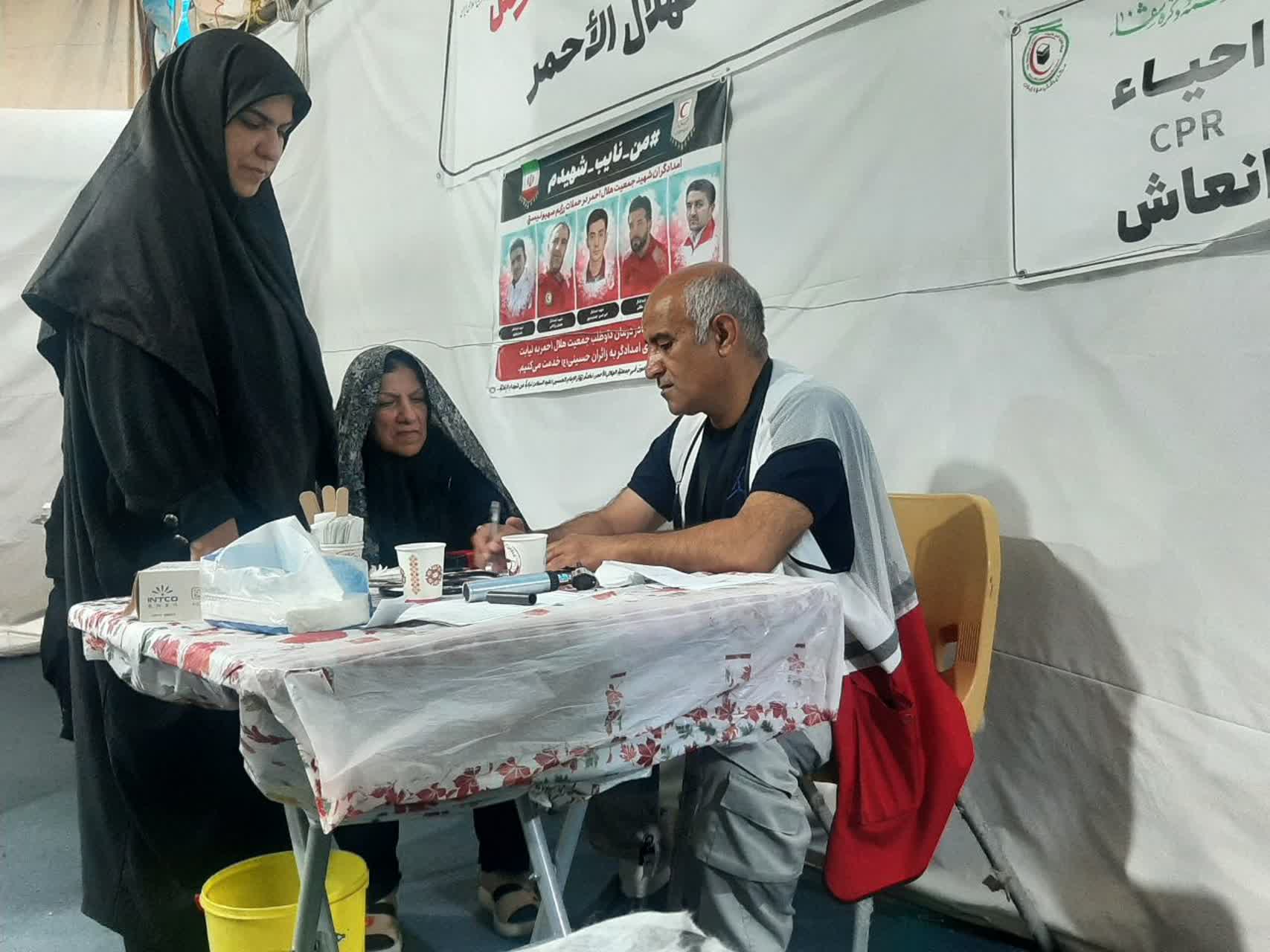 خدمترسانی تیم درمانی جمعیت هلالاحمر استان فارس به زوار حضرت اباعبدالله الحسین در درمانگاه شهر کربلا