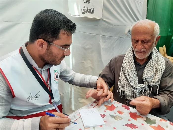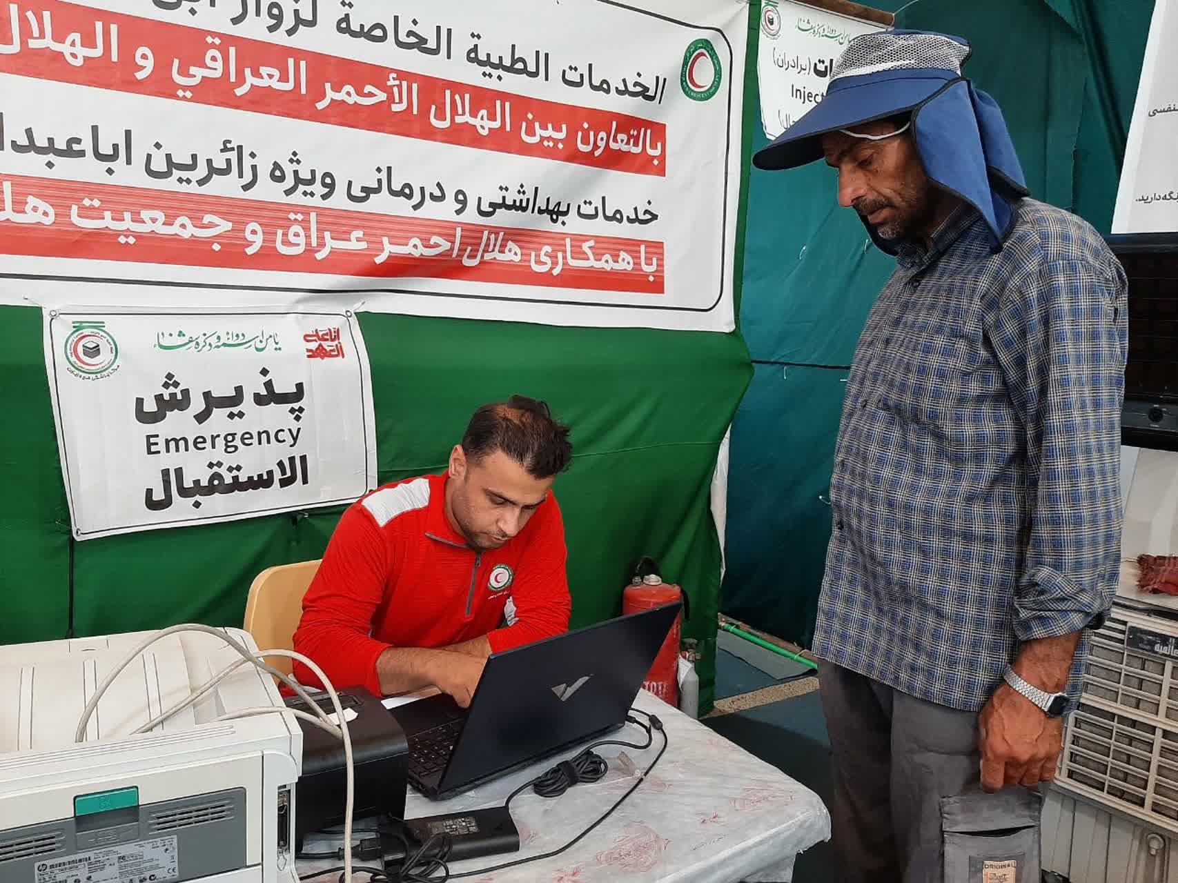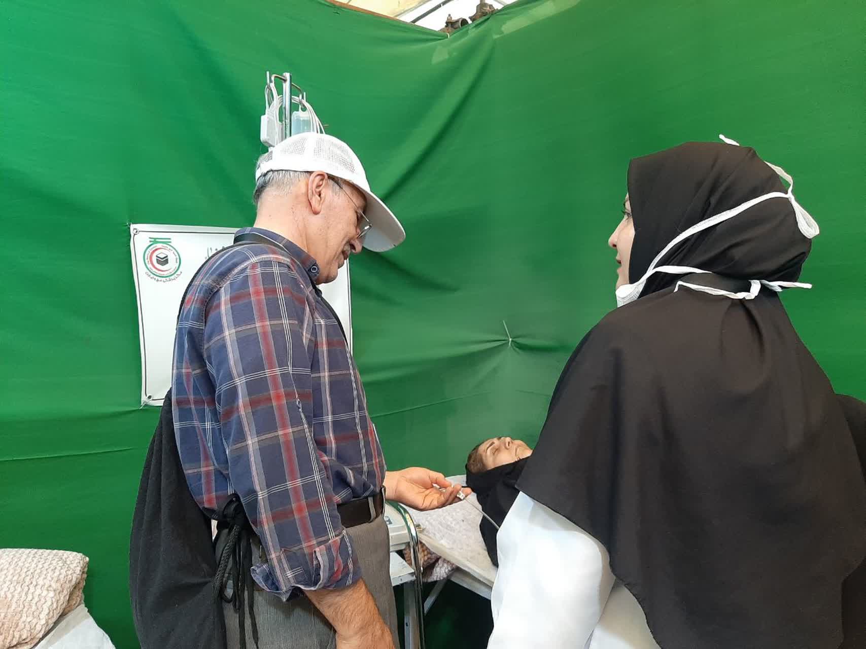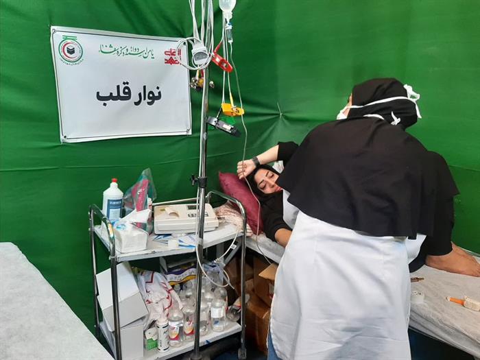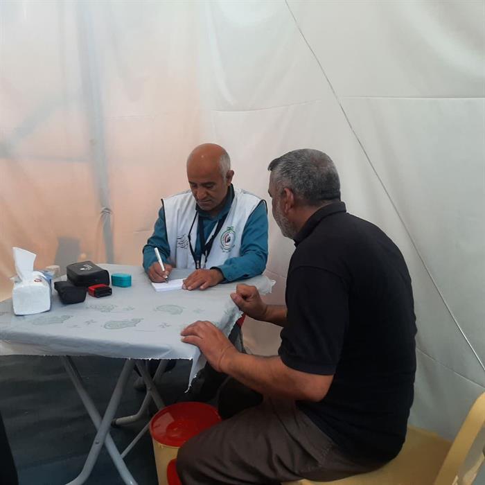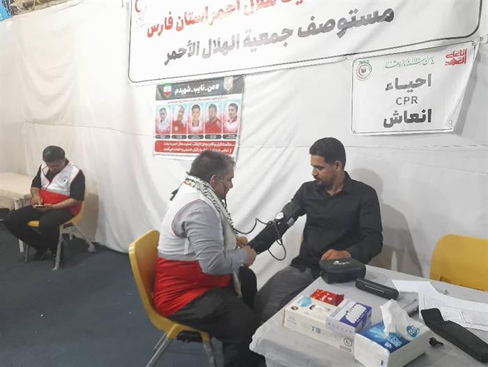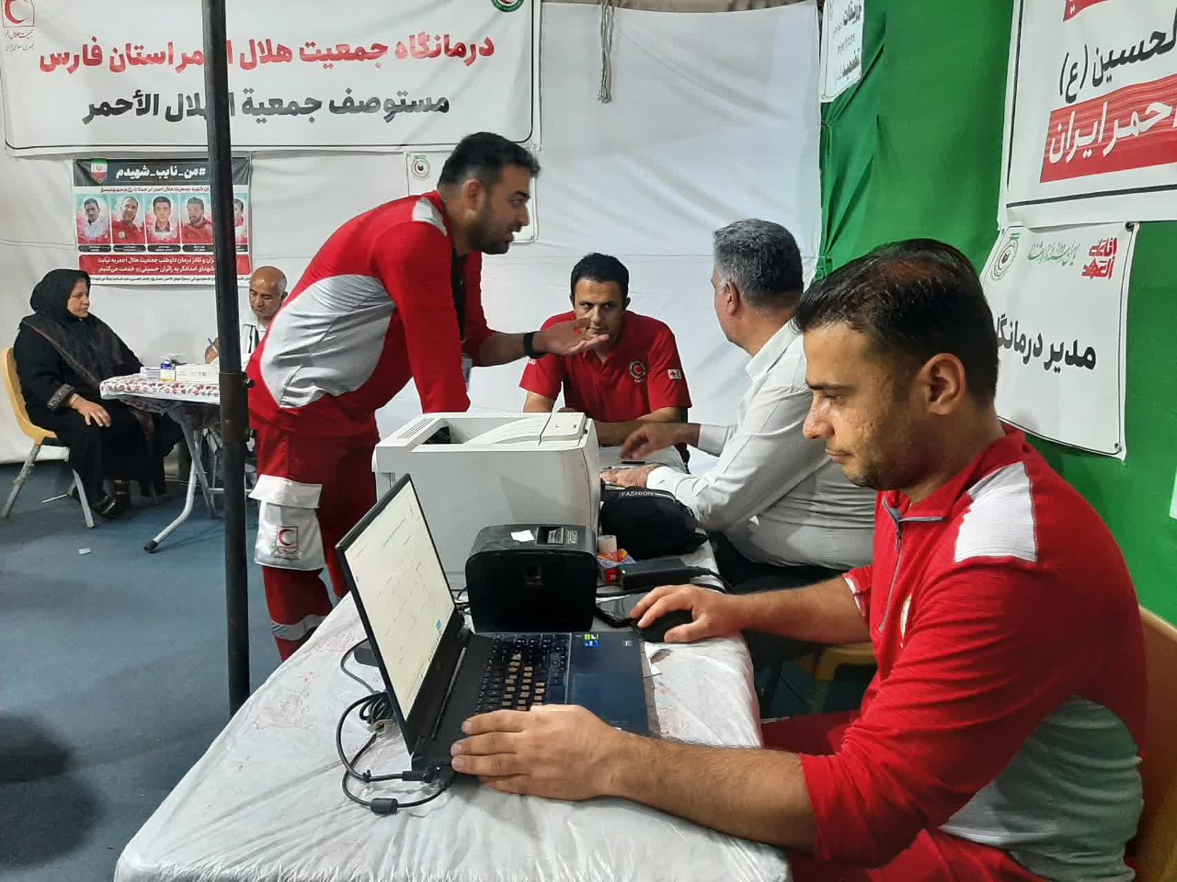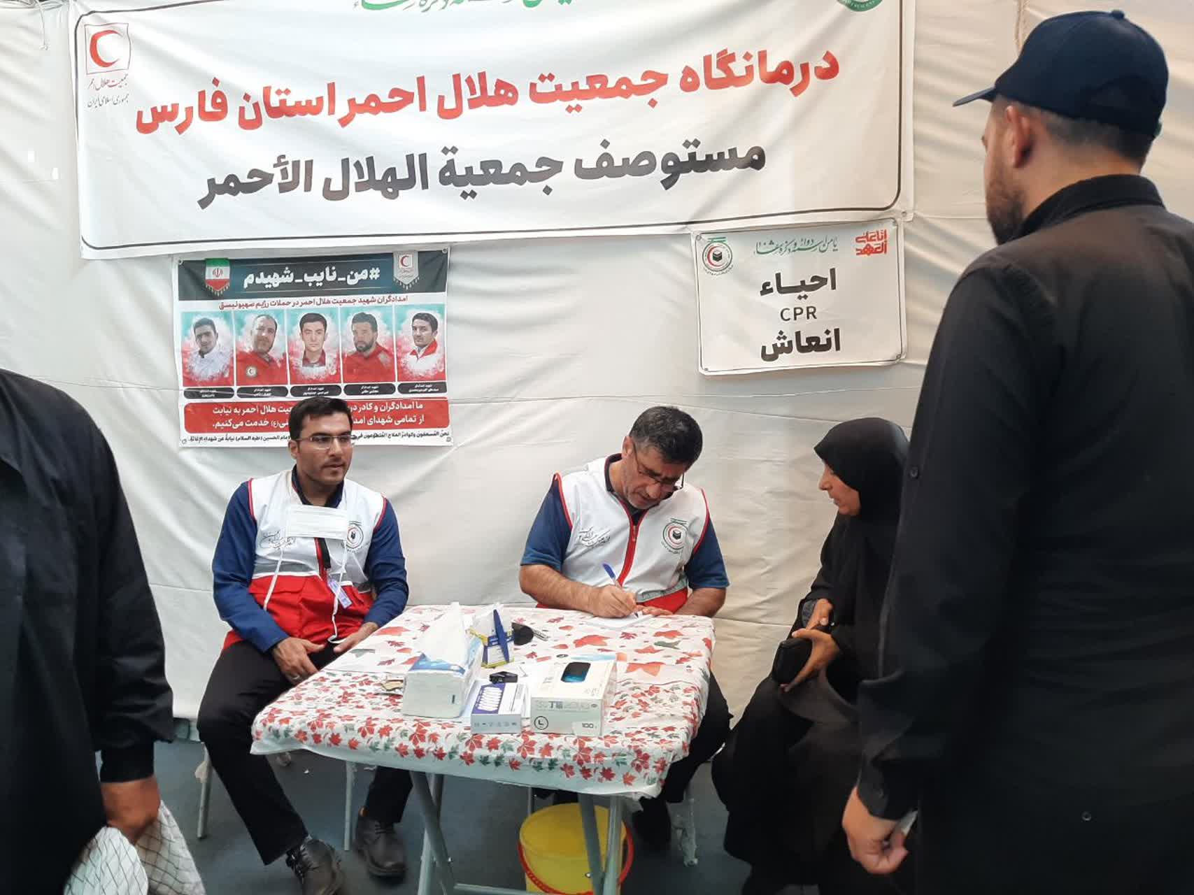 خدمترسانی تیم درمانی جمعیت هلالاحمر استان فارس به زوار حضرت اباعبدالله الحسین در درمانگاه شهر کربلا