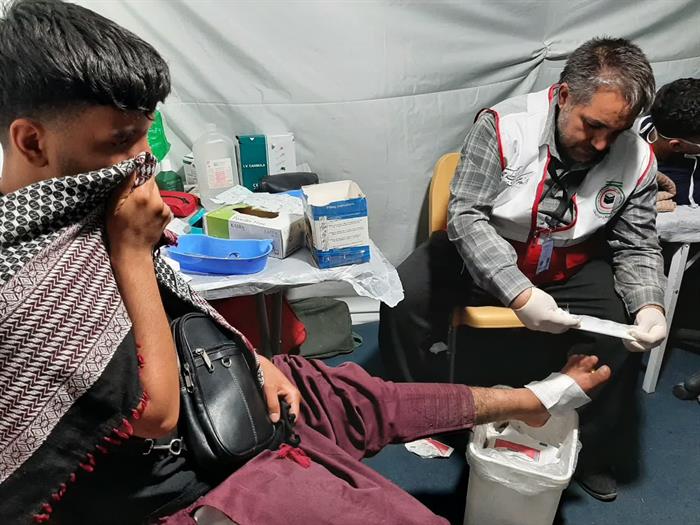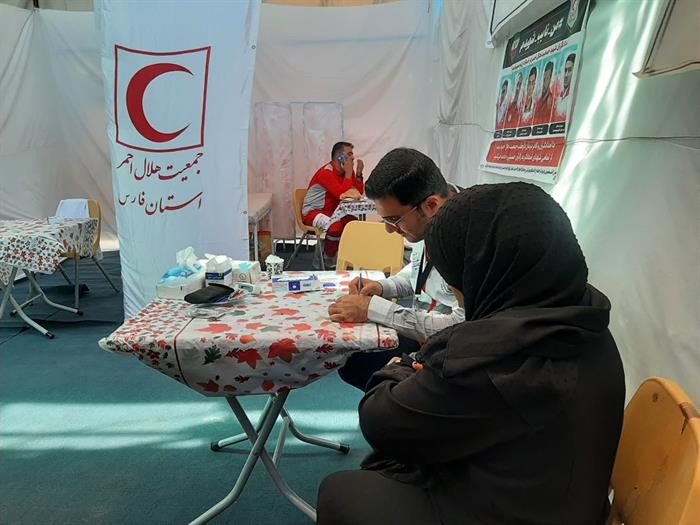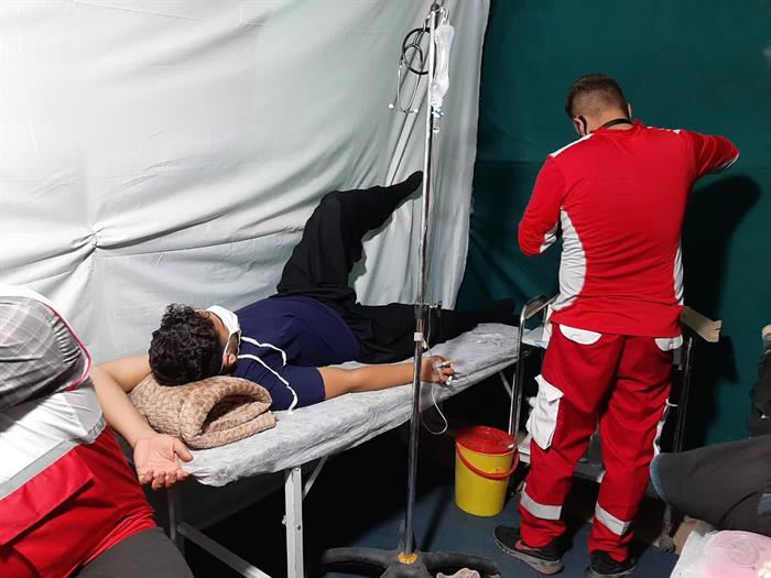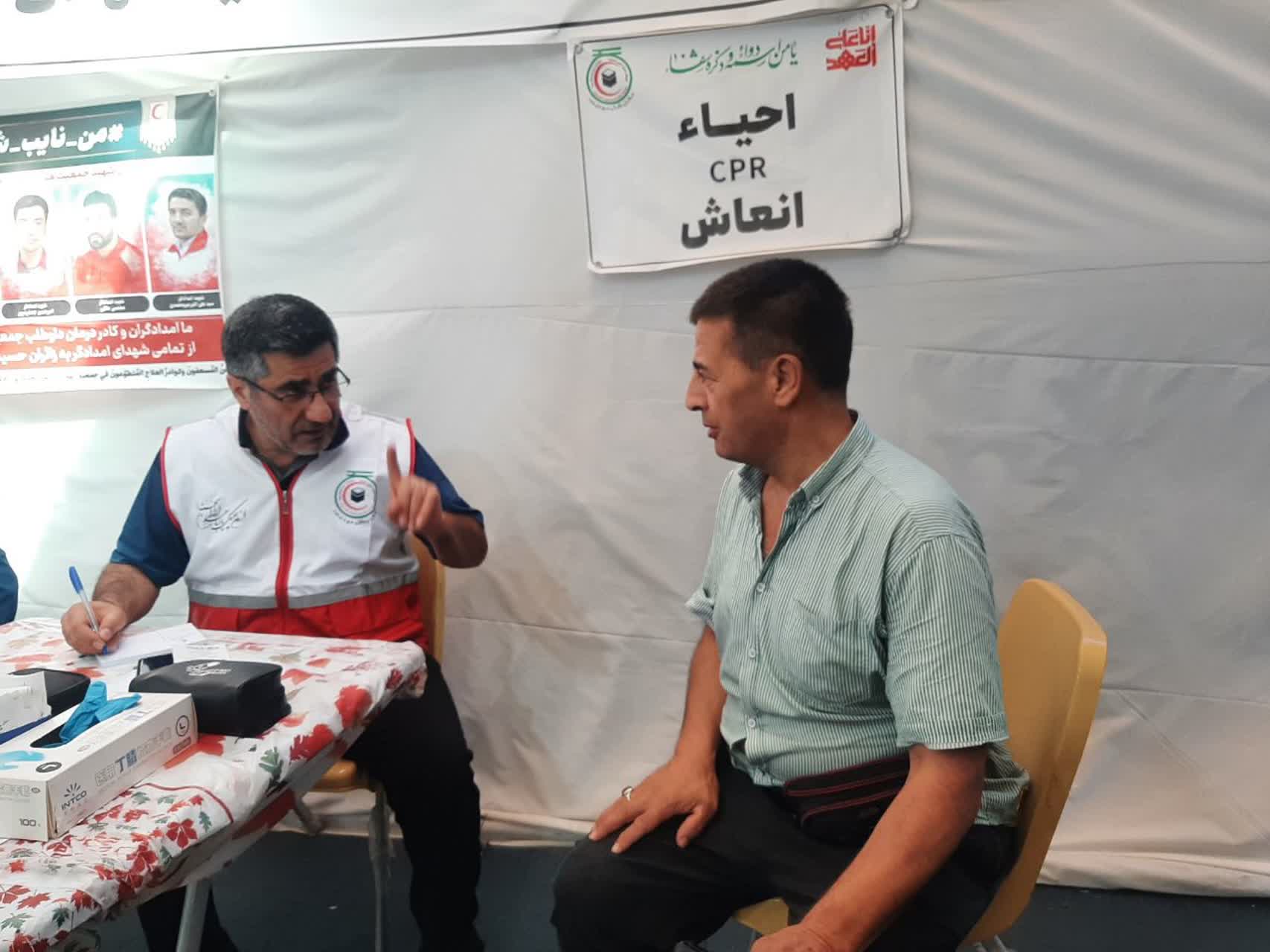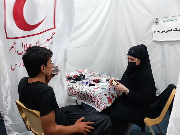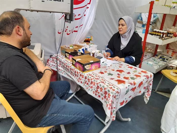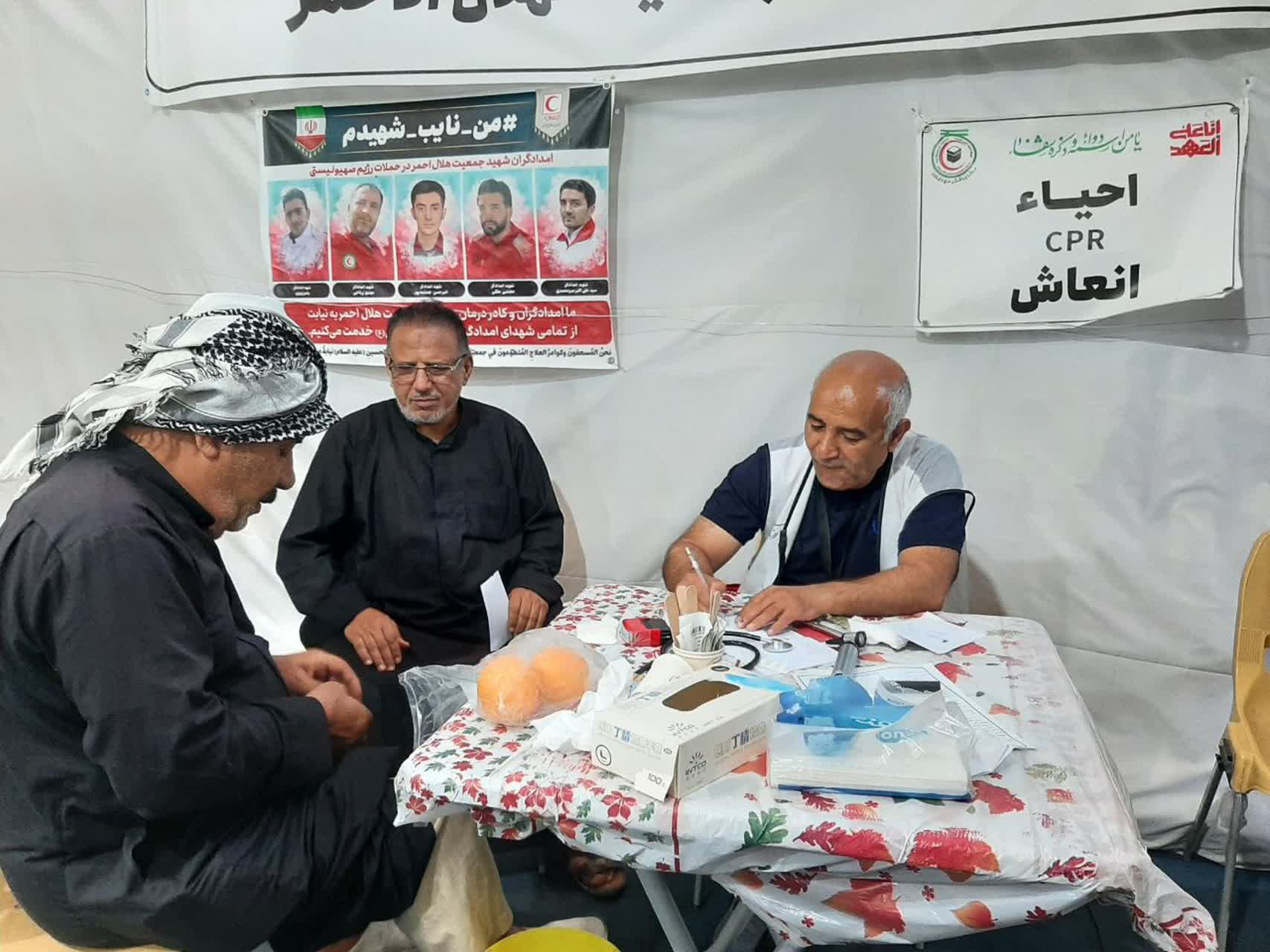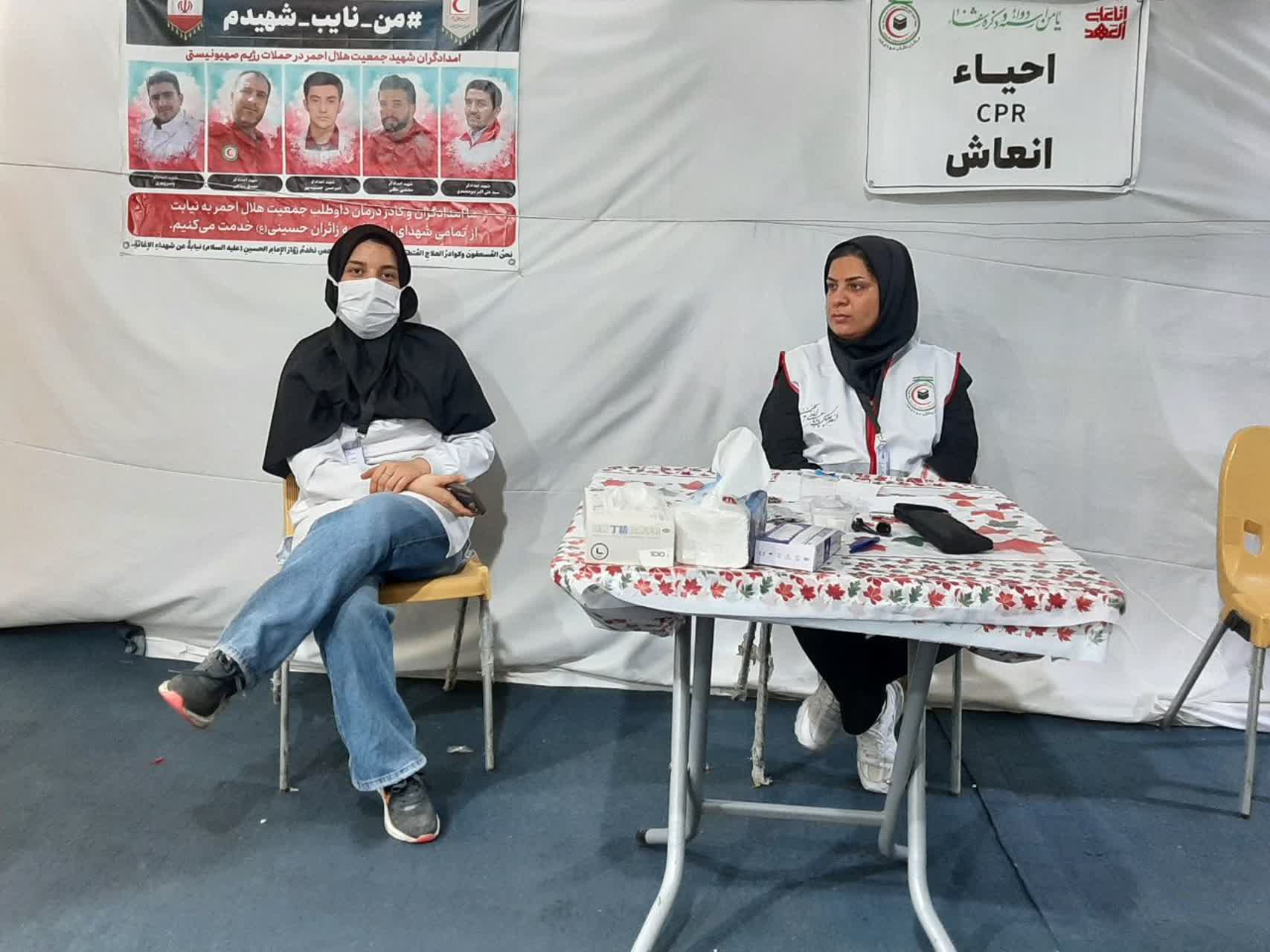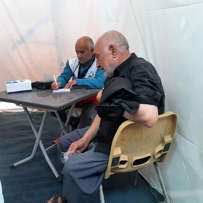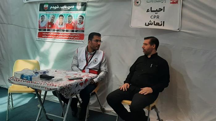 خدمترسانی تیم درمانی جمعیت هلالاحمر استان فارس به زوار حضرت اباعبدالله الحسین در درمانگاه شهر کربلا