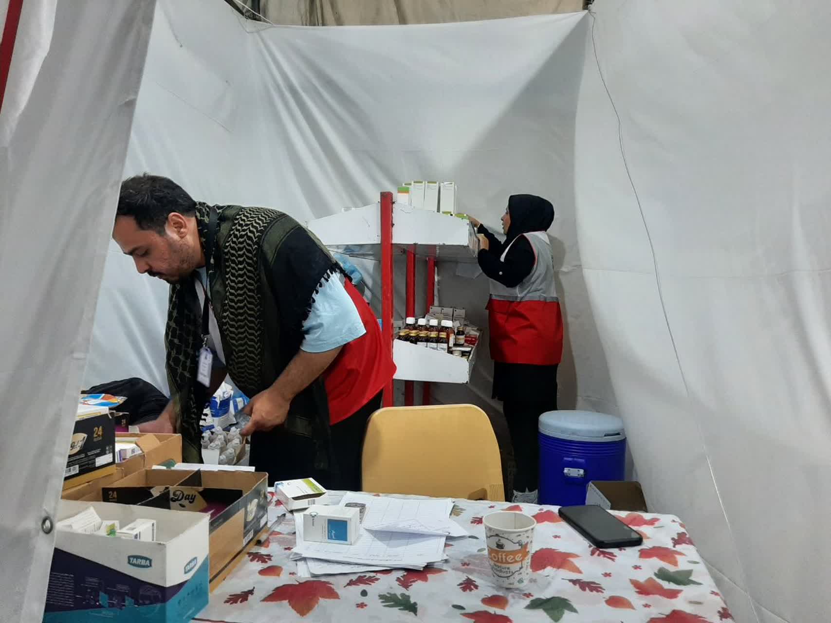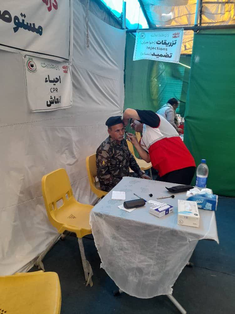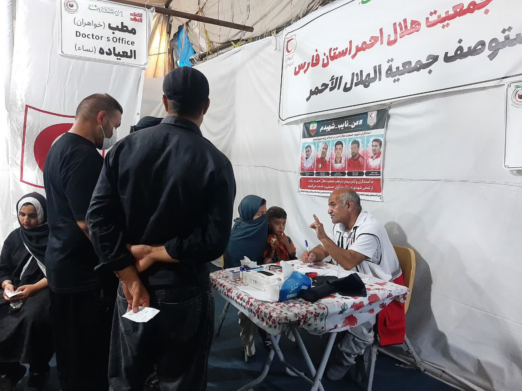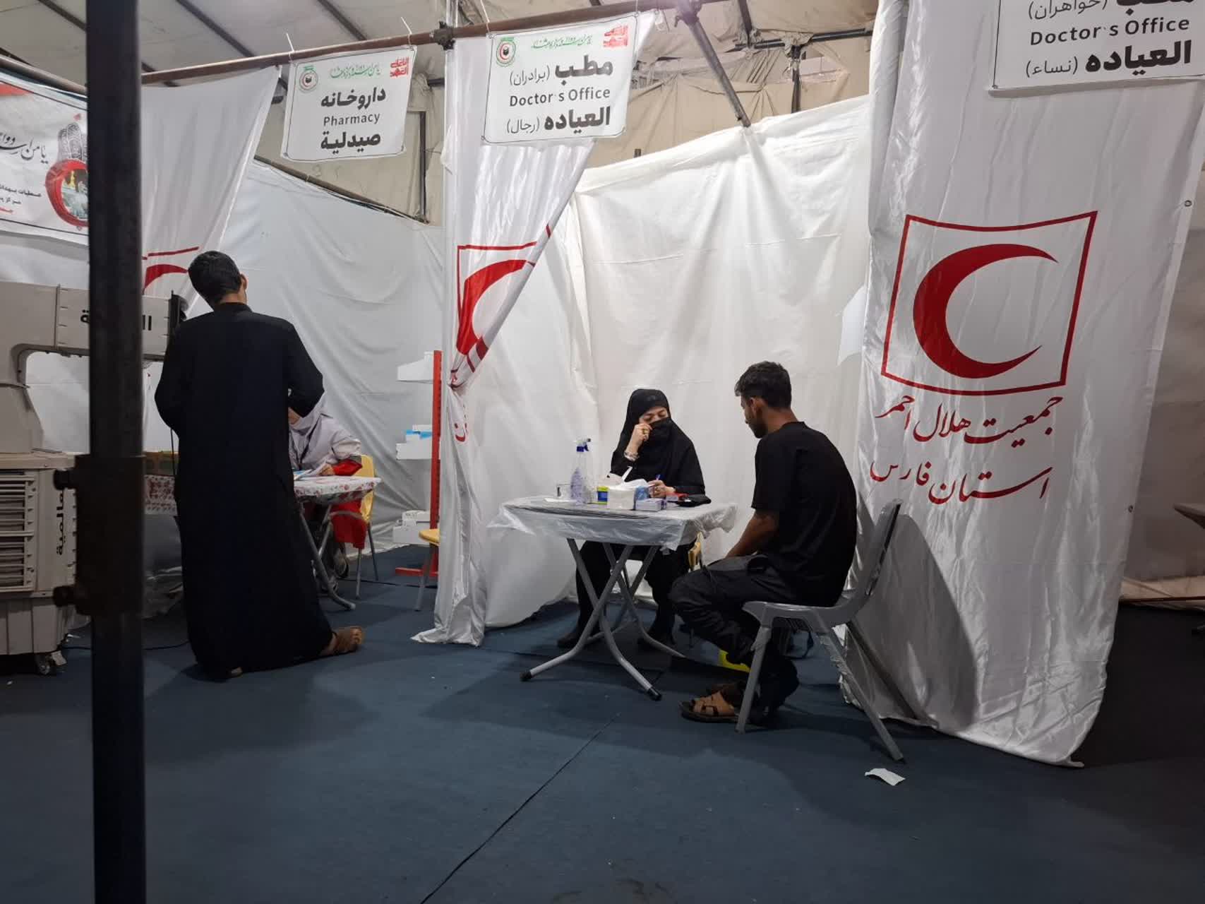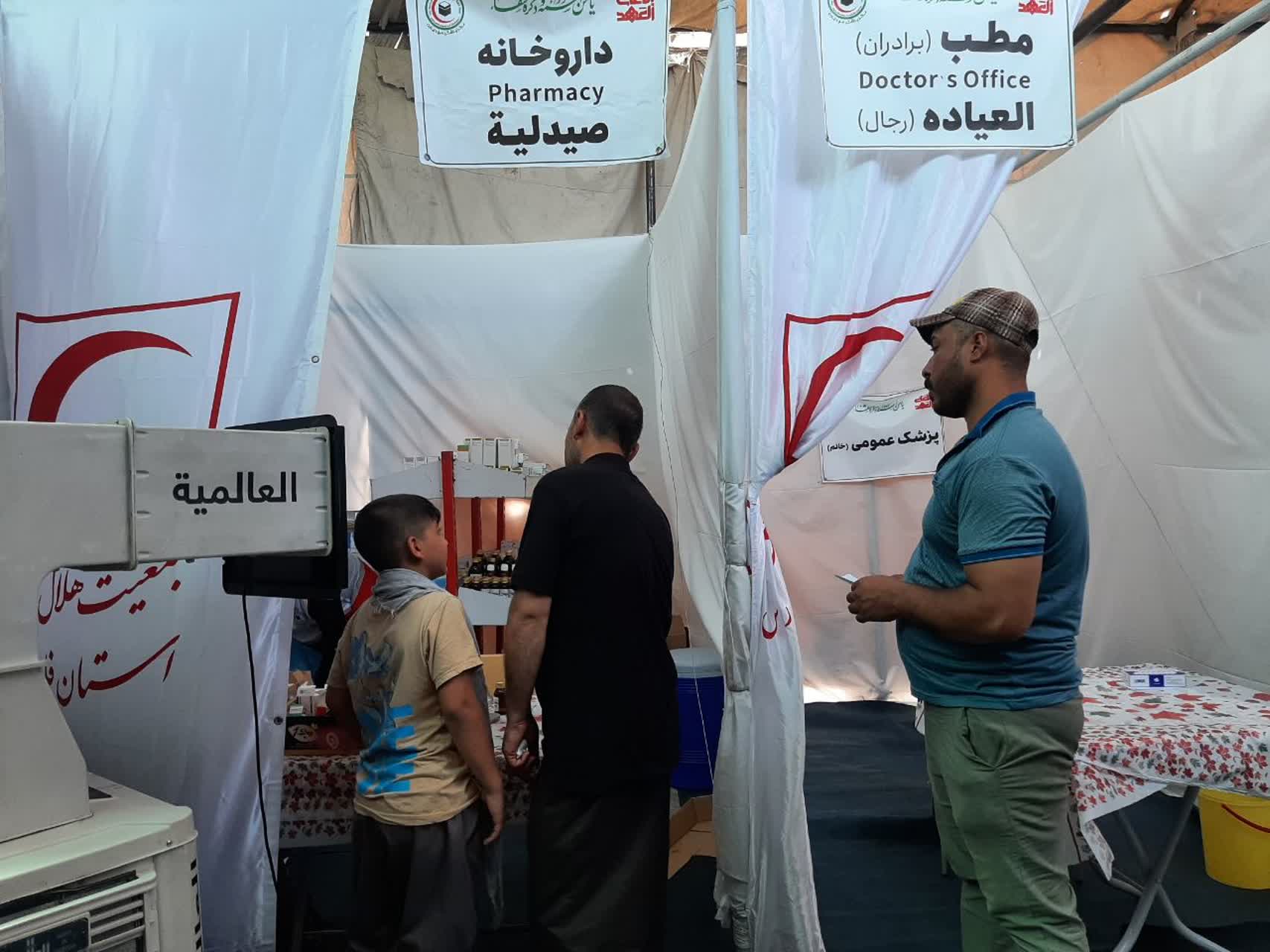تصاویر خدمترسانی تیم درمانی جمعیت هلالاحمر استان فارس به زوار حضرت اباعبدالله الحسین در درمانگاه شهر کربلا