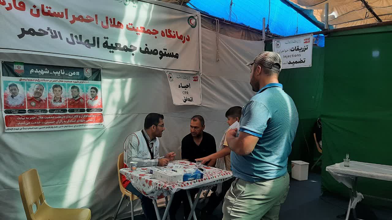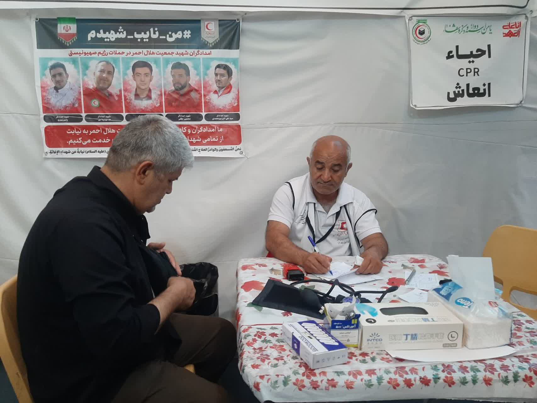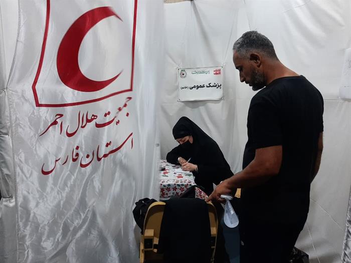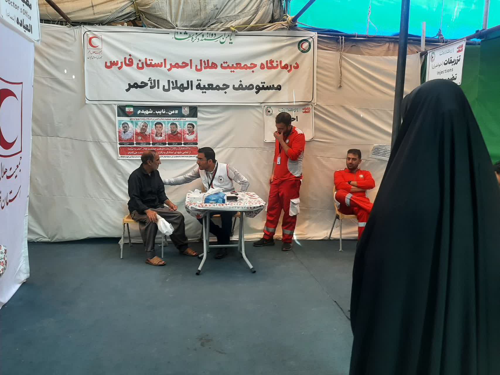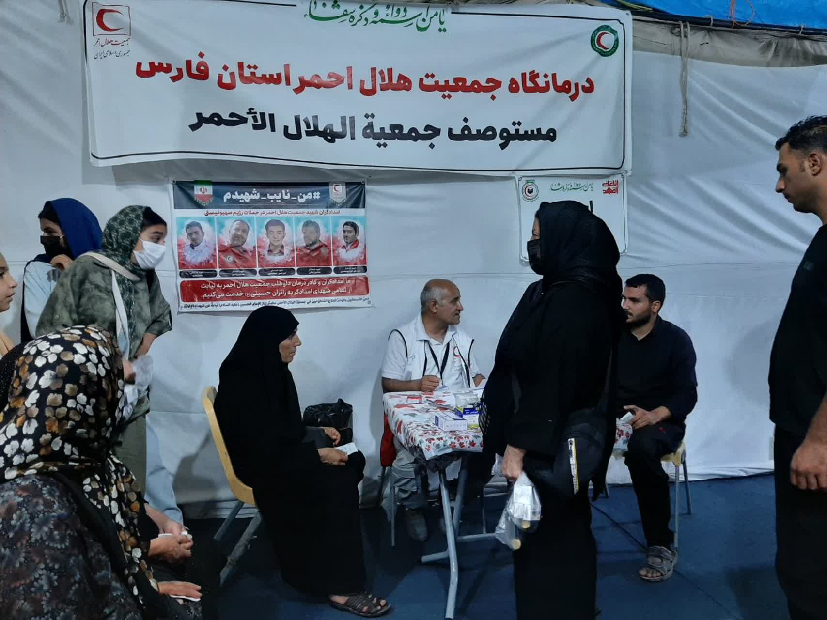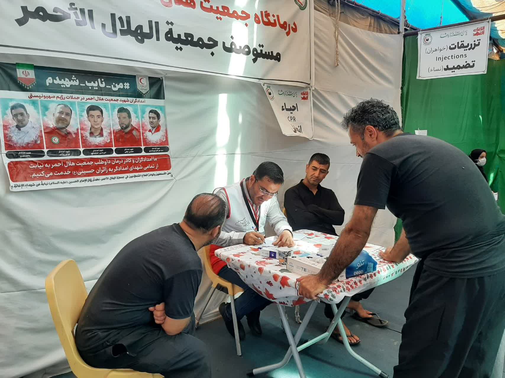 تصاویر خدمترسانی تیم درمانی جمعیت هلالاحمر استان فارس به زوار حضرت اباعبدالله الحسین در درمانگاه شهر کربلا