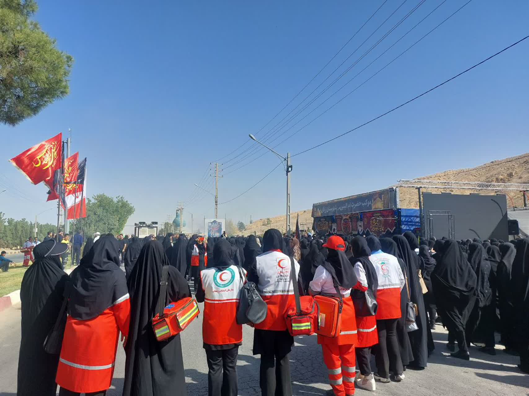 پوشش امدادی تیمهاى عملیاتی جمعیت هلالاحمر استان فارس در مراسم پیادهروی جاماندگانِ اربعین حسینی