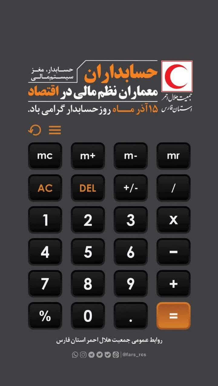 به مناسبت روز حسابدار، ضمن گرامیداشت جایگاه والای این حرفه در جامعه، از زحمات ارزشمند همکاران محترم حوزه خزانه داری جمعیت هلالاحمر استان فارس در پشتیبانی از فعالیتهای داوطلبانه و انساندوستانه سپاسگزاریم و برایتان سلامتی، موفقیت و توفیق روزافزون در خدمت به مردم عزیز ایران آرزو داریم.