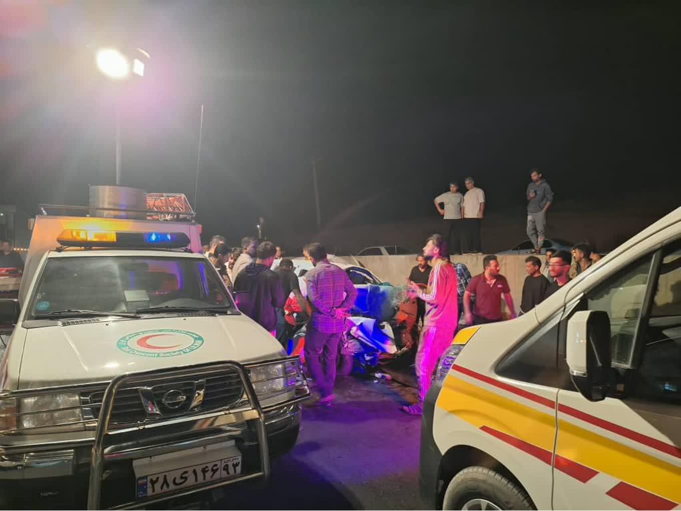 تصادف پژو ۴۰۵ و پراید در جاده کازرون به شیراز با ۶ مصدوم