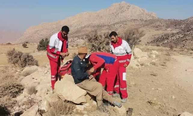 امدادرسانی نجاتگران هلالاحمر به فرد ۳۵ ساله در ارتفاعات درههایقر شهرستان فیروزآباد