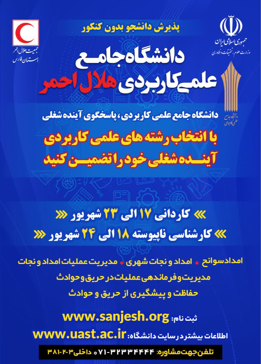 به گزارش روابط عمومی جمعیت هلال‌احمر استان فارس، سید محمدرضا افضلی گفت: ثبت‌نام داوطلبان دوره‌های کاردانی و کارشناسی دانشگاه علمی‌کاربردی هلال‌احمر شیراز از روز دوشنبه ۱۷ شهریورماه آغاز و تا ۲۴ شهریورماه ادامه خواهد داشت.